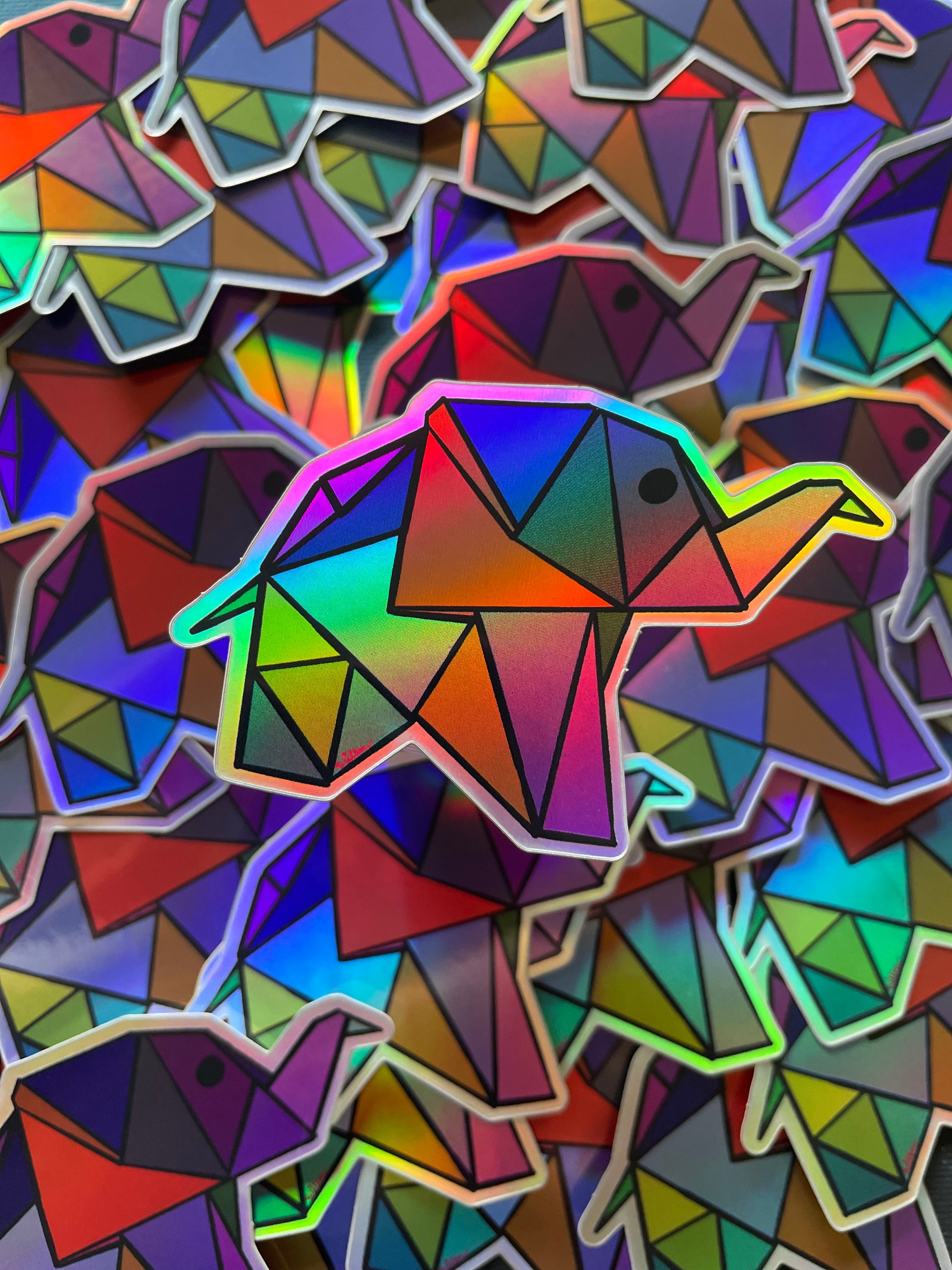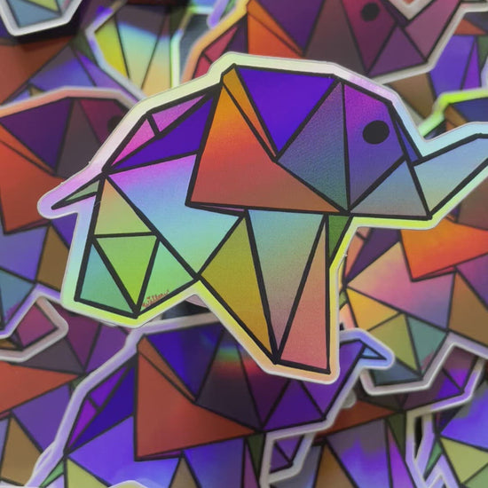 Holographic multicolor geometric elephant sticker. 2x1''