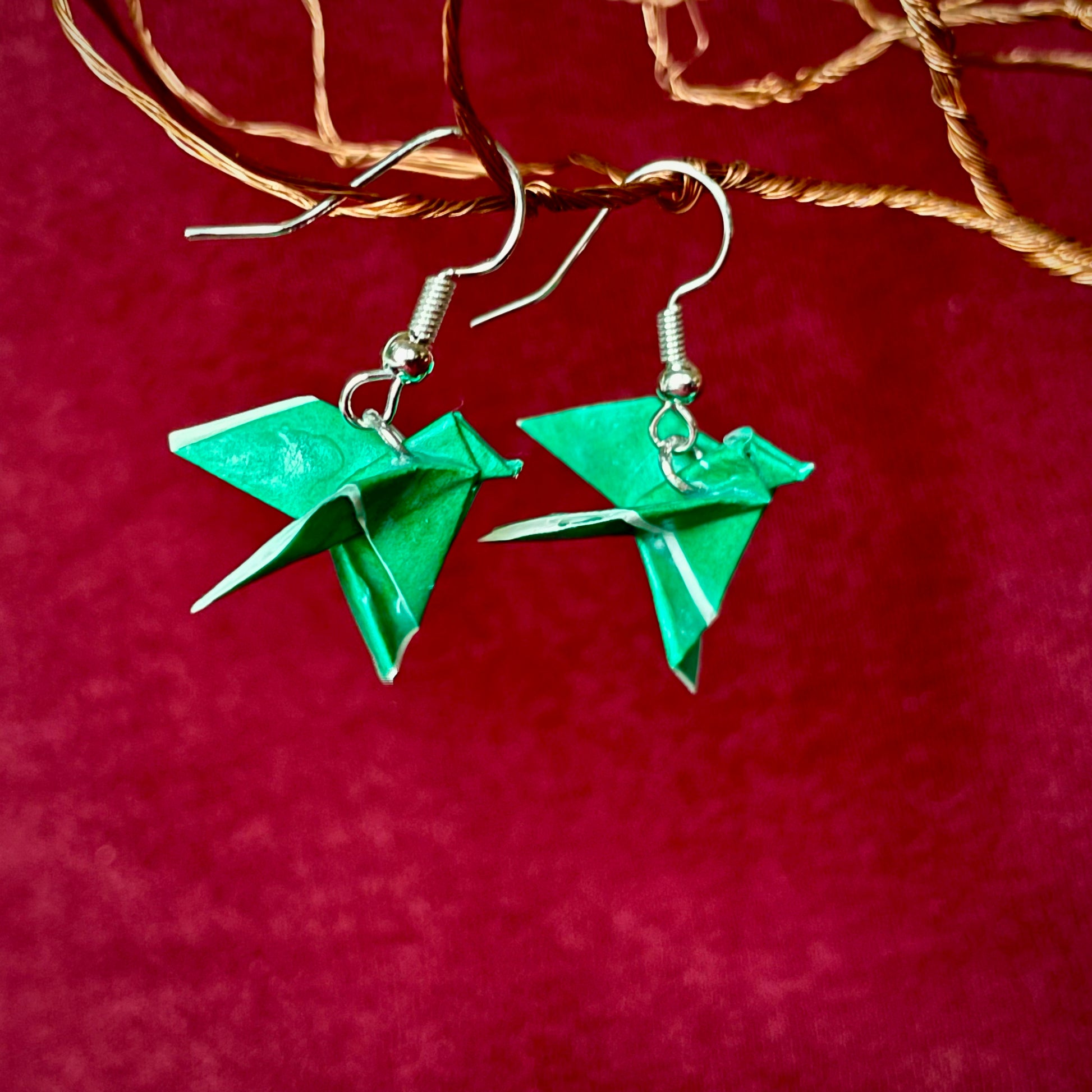 Various Bird earrings done in origami, coated with Polyurethane.