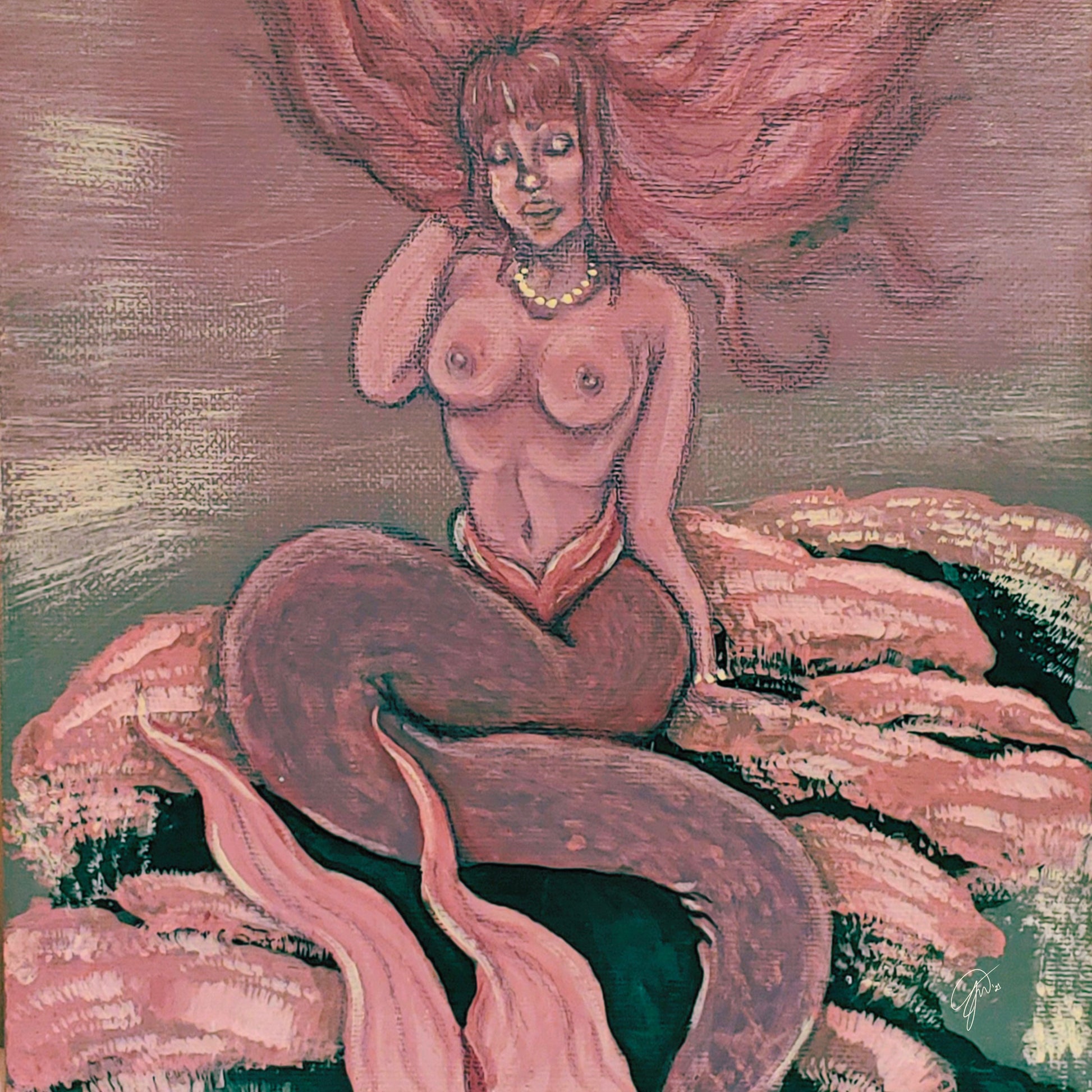 The original is available, message if interested! Otherwise this lovely mermaid in shades of pink and purple is available in an 8x8 print.