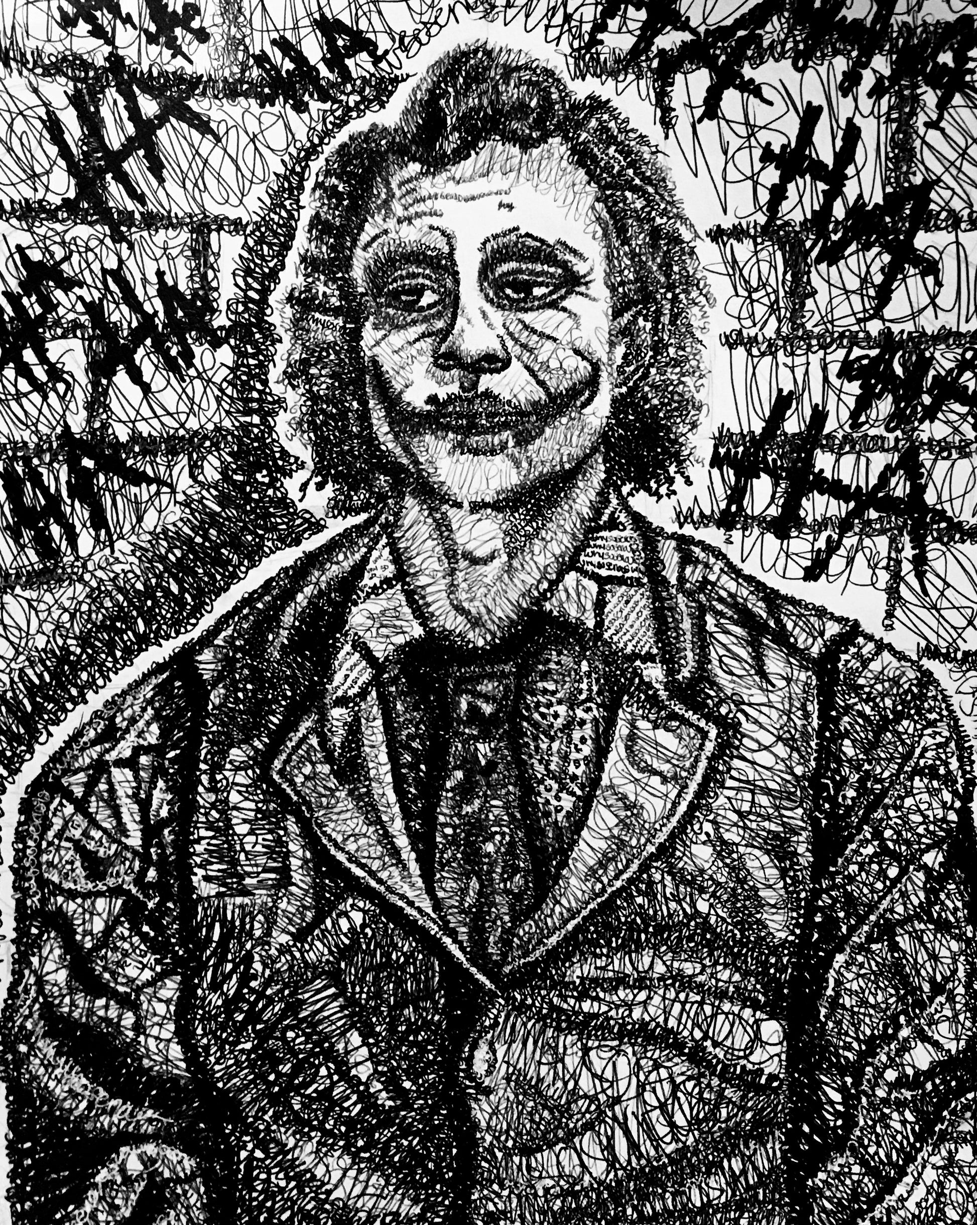 A word art style Heath ledger. The sentence why so serious has been written repeatedly to form the image you see! How crazy! This is a print.